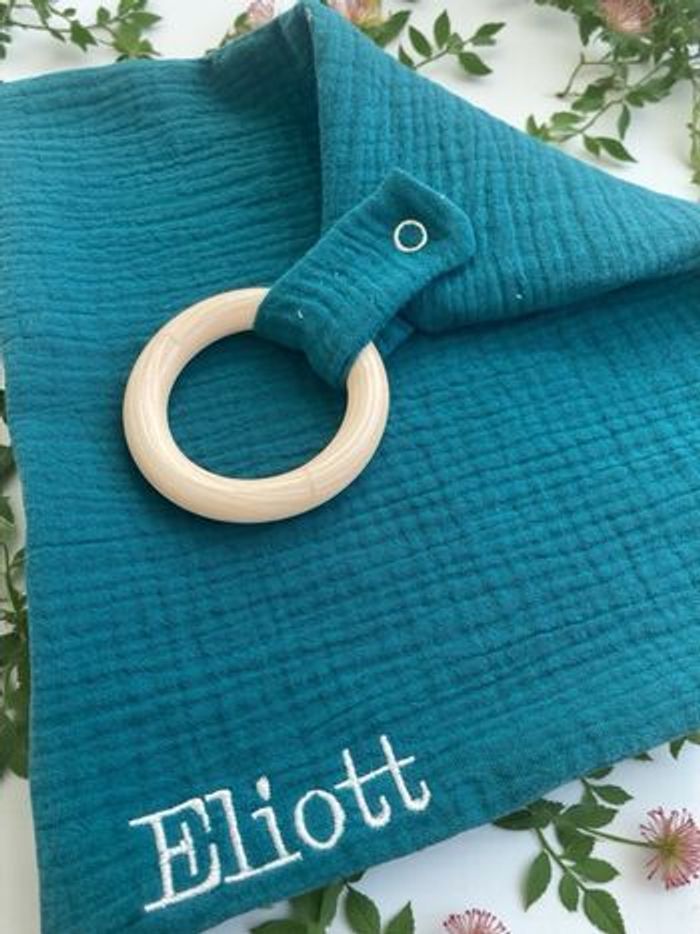 Les petits carrés d’éveil sont entièrement conçus en tissus certifiés Oeko-Tex, garantis sans substances nocives. Réalisés en double gaze de coton, ils sont agréables au toucher pour bébé et parfaits pour stimuler les sens tout en douceur. Un anneau de dentition est intégré afin de soulager les poussées dentaires, et une attache permet également d’y accrocher la tétine pour un usage pratique au quotidien. Chaque carré d’éveil peut être personnalisé avec la broderie du prénom de Bebe . Vous avez la possibilité de sélectionner parmi 21 couleurs disponibles et plus de 80 couleurs de broderie afin de créer un modèle unique et harmonieux. À la fois ludique, pratique et personnalisé, ce carré d’éveil accompagne bébé dans ses découvertes tout en restant un accessoire utile et doux au quotidien.