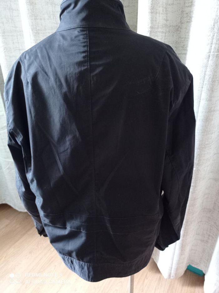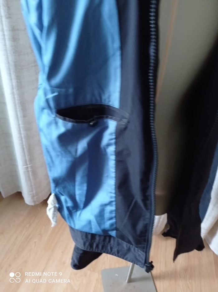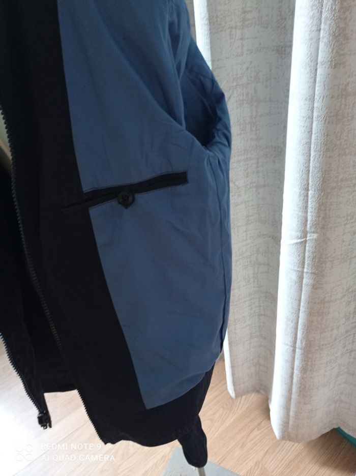 Beau blouson bleu deux grandes poches avec faux rabat; la poche s'ouvre sur le coté par une fermeture zippée une poche intérieur col avec bord rigide poignets à boutons largeur épaule 48 largeur poitrine57 longueur total 67 longueur des manches 67