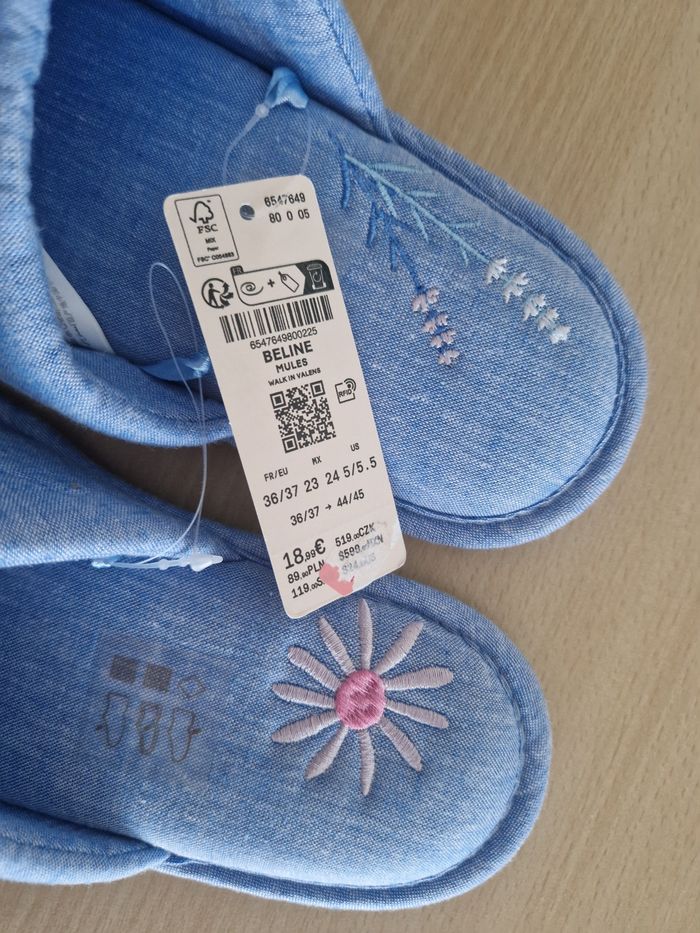 Jolis chaussons Etam Pointure 36/37 Bleu broderies fleurs Très printanier Neufs étiquetés