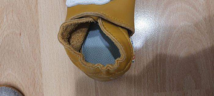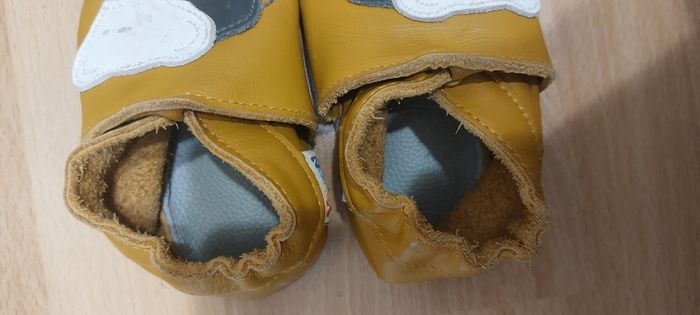 Je vends cette paire de chaussons en cuir souple pour bébé. En très bon état, intérieur et extérieur. - Type de produit : Chaussons - Marque: yalion - Taille : 21-22 - Couleur : Jaune / Moutarde - Matière : Cuir souple Prix: 6 euros N'hésitez pas à me contacter pour plus d'informations !