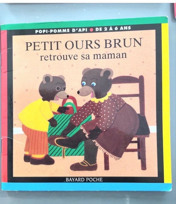 Lot de 6 livres de la série Petit Ours Brun, une collection incontournable pour les enfants. Ces livres colorés raviront les jeunes lecteurs en quête de tendres aventures. - Petit Ours Brun retrouve sa maman (bon état) - Petit Ours Brun veut un baiser (bon état) - Petit Ours Brun à la piscine (très bon état intérieur juste coins) - Petit Ours Brun chez Mamie (très bon état) - Petit Ours Brun à la ferme (très bon état) - Petit Ours brun à perdu son doudou (bon état voir pages intérieures et coins) Format: Cartonne/Broché 1,50€ le livre 5 petits et 1 plus gros à la piscine Très bon état pour certains et bon état pour d'autres Attention ⚠️ ⛔️ me contacter avant l'achat si vous en voulez un ou plusieurs !! Merci