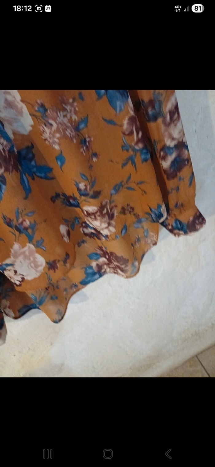 Blouse colorée, manches longues, boutonnée à l avant. Plus à l arrière qu à l avant. Transparente. Neuve