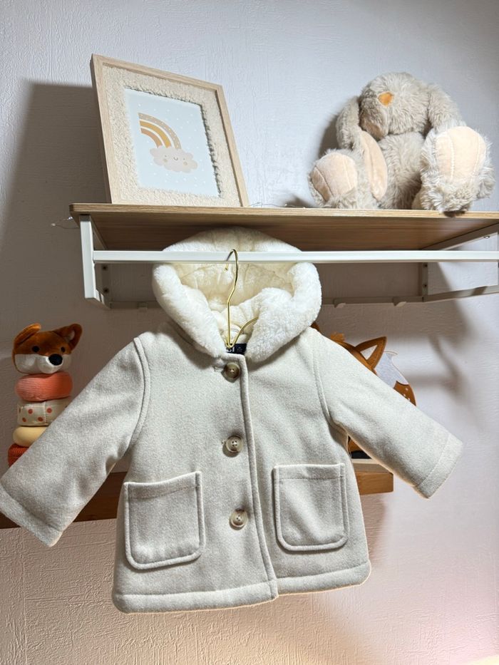 Adorable manteau mixte en taille 3 mois, couleur écru / beige très facile à assortir 🤎 Intérieur tout doux et chaud, parfait pour l'hiver et la mi-saison. 🧸Style intemporel et élégant 🧸Fermeture avec jolis boutons 🧸Deux grandes poches trop mignonnes Très bon état, peu porté Idéal pour garder bébé bien au chaud avec style 🤍
