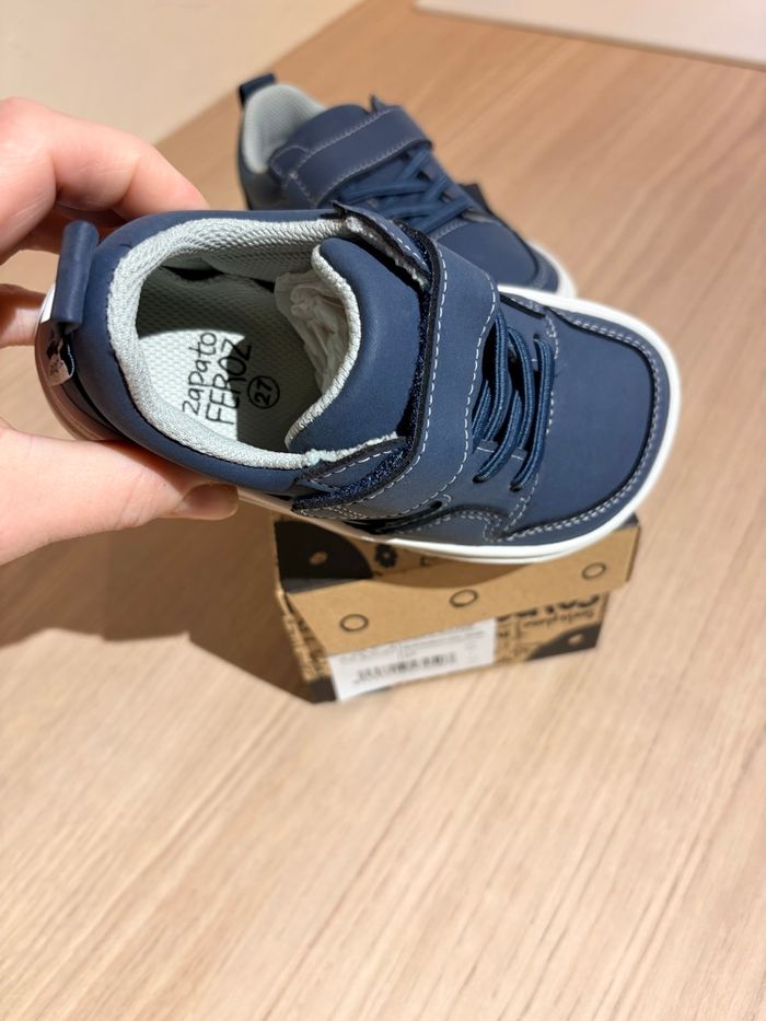 Nouveau modèles barefoot zapato feroz! Collection actuelle été 2026, Toe box améliorée pour libérer d'avantage les métatarses et développer la marche pied nus Large scratch de réglage + lacets élastique matière respirante et facile entretien Pointure 27 Neuves! Acheté à l'avance pour éviter les ruptures malheureusement déja trop petites Modèles en rupture partout Acheté 64€ Conviennent pieds larges coup de pieds moyen/ fort Longueur semelle intérieur : 17,3cm Largueur semelle intérieure : 7,2cm