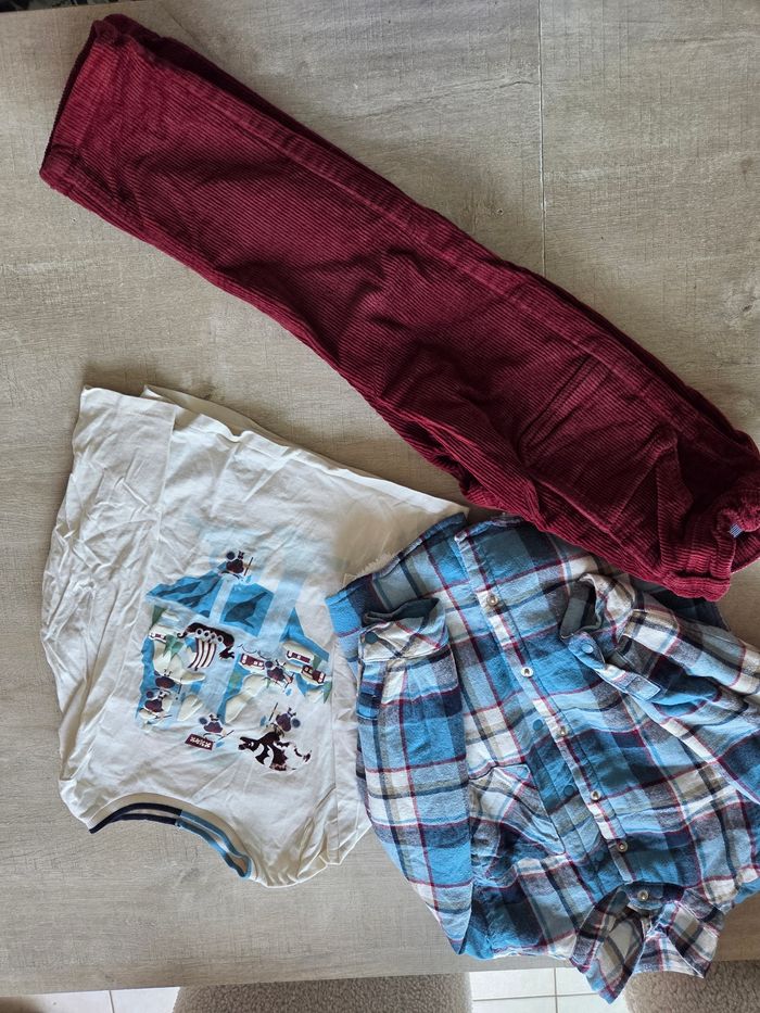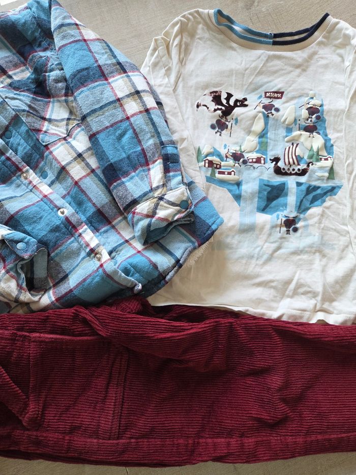 Tres jolie ensemble en 6ans pantalon velours côtelé bordeaux avec tee shirt a manche longue ( a noter la matière douce du dragon s'en va doucement) et chemise intérieur fourrée