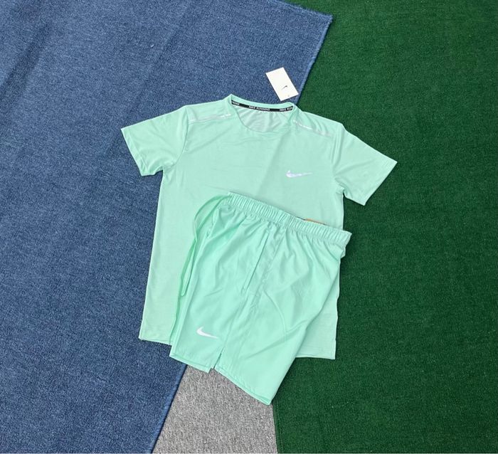Ensemble Nike composé d’un t-shirt manches courtes et d’un short assorti. Tenue idéale pour le sport, le fitness ou un look décontracté. • État : neuf avec étiquette • Marque : Nike • Logo Nike blanc • Matière légère et respirante • Taille : M