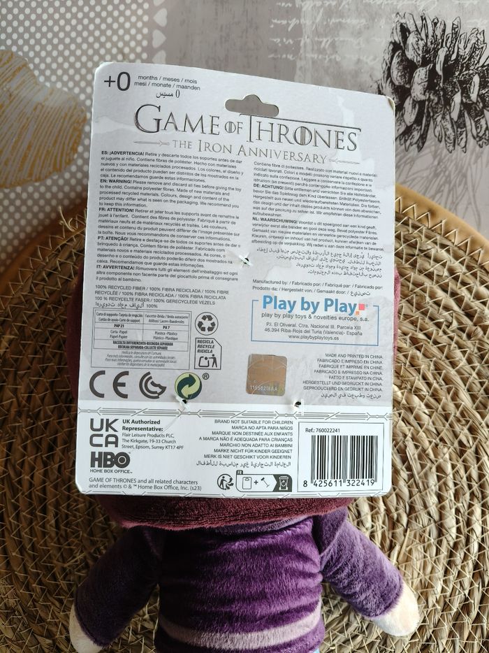 Univers : Game of thrones Format : 30 cm Marque : Warner Bros État : Neuf, avec étiquette Description : Peluche neuve, uniquement exposée en vitrine.