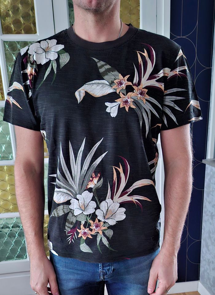 t-shirt JACK & JONES noir imprimé fleurs, taille M, bon état