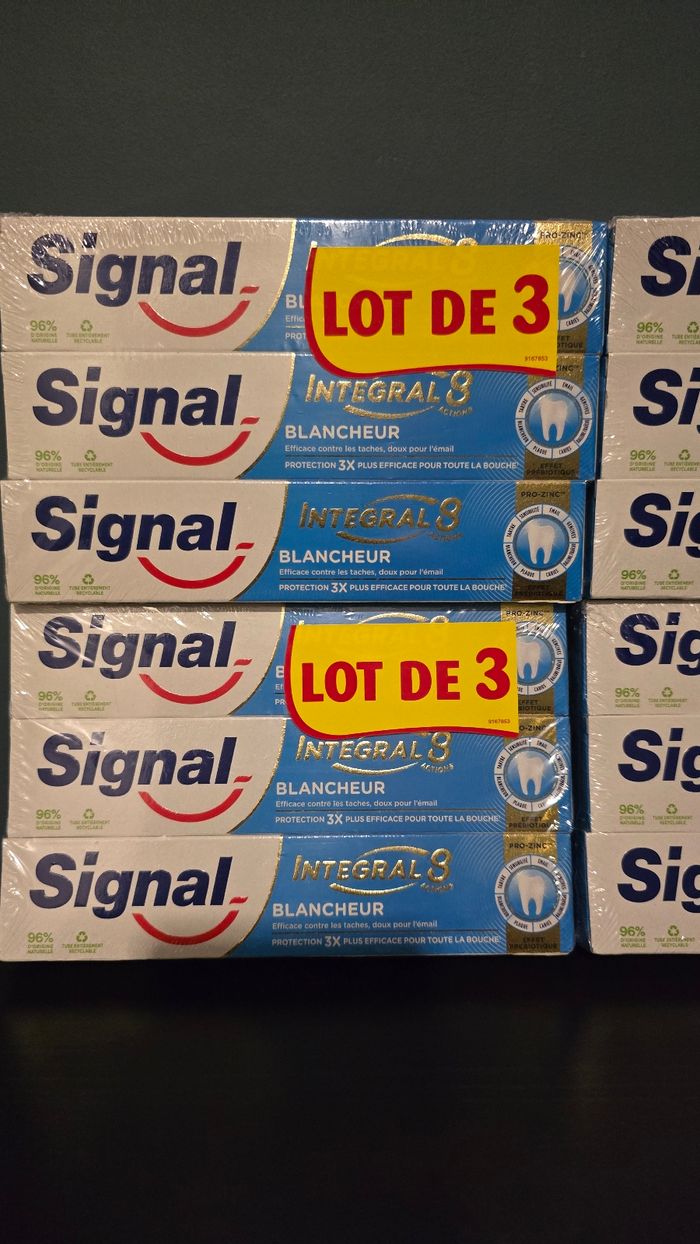 A vendre 6 lots de 3 dentifrices signal intégral 8 blancheur Soit 18 tubes de dentifrice Neufs jamais ouverts