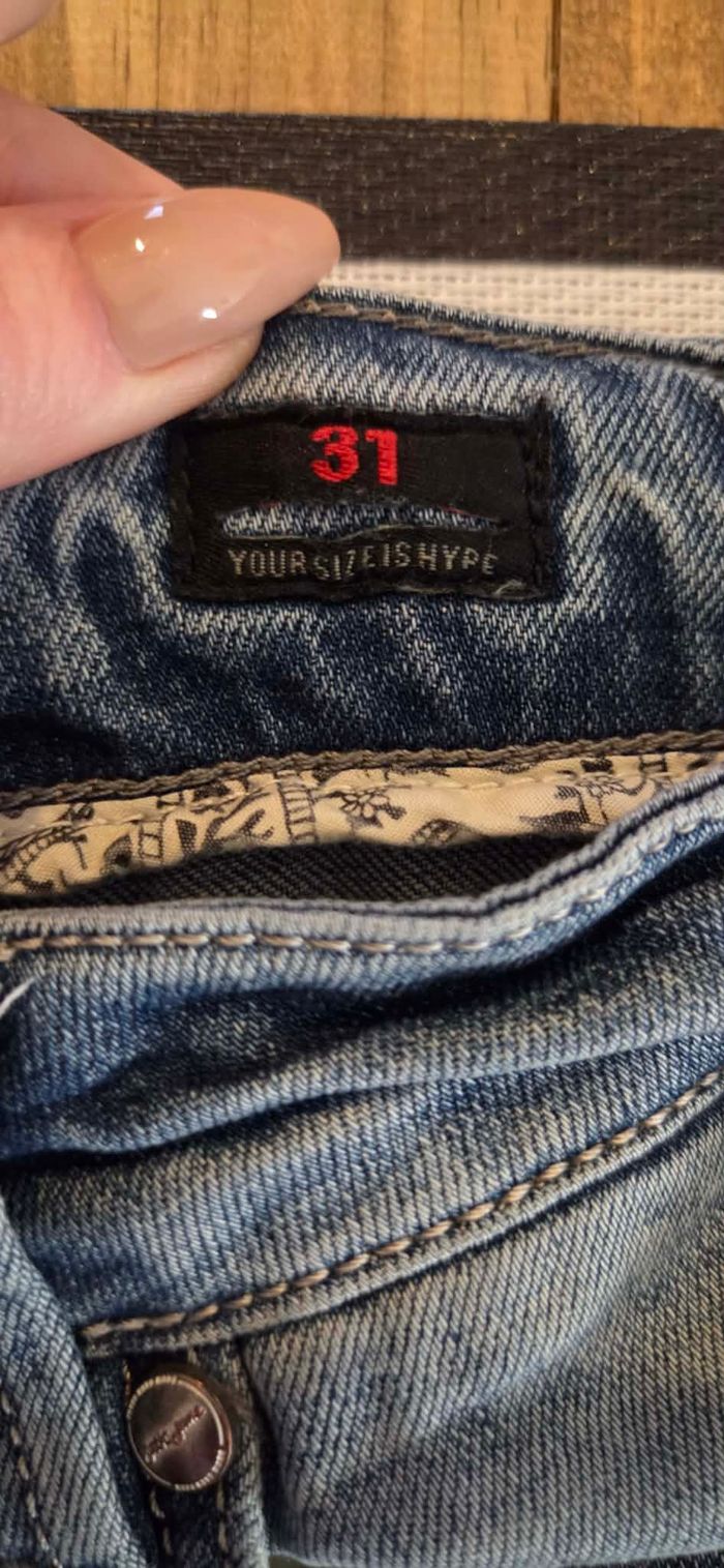 ✅ INFORMATIONS ESSENTIELLES Marque : Sixth June – Fresh Denim Factory Taille : 31 (équiv. 40/42 FR selon morphologie) Longueur totale : 105 cm Longueur entrejambe : 81/82 cm Largeur taille : 40 à 44 cm (extensible) Matière : 78% Coton 15% Polyester 5% Rayon 2% Élasthanne État : Excellent état ✨ DESCRIPTION Jean Sixth June au style affirmé et moderne, avec fermeture boutons métalliques apparents signature de la marque. ✔ Denim souple et confortable grâce à l’élasthanne ✔ Taille extensible ✔ Coupe ajustée avec découpes structurantes ✔ Effet légèrement délavé tendance ✔ Look streetwear / urbain Un modèle qui donne du caractère à une tenue simple (t-shirt blanc, hoodie, baskets). Parfait pour un look casual travaillé ou street chic. 📏 Taille & Coupe Taille 31 Convient environ à un 40/42 FR homme selon morphologie (voir mesures précises ci-dessus). Les jeans Sixth June sont généralement proposés entre 90 € et 120 € neufs en boutique, ce modèle offre donc une belle opportunité à prix avantageux. ℹ️ Informations importantes La couleur du vêtement peut légèrement varier en raison des conditions d’éclairage. Veuillez examiner attentivement les photos, les détails et les mesures fournies. Pour toutes informations complémentaires n'hésitez pas à me contacter. 📦 Expédition sous 24h.