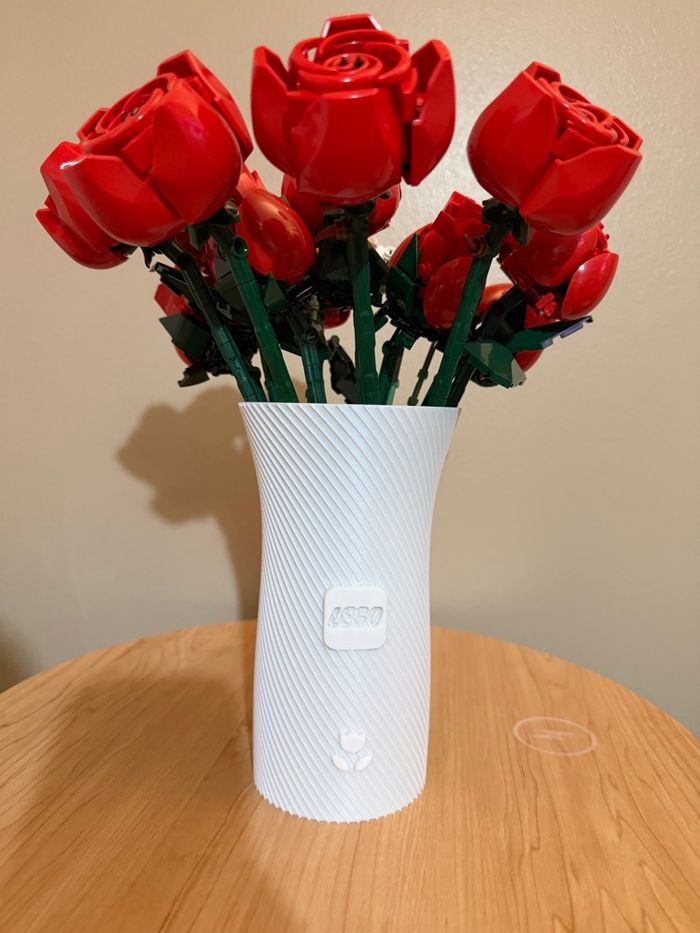Vase fait en PLA impression 3D Vase écriture lego Vase idéal pour fleurs lego ou fleurs séchées (ne pas mettre d'eau, non étanche) ⚠️⚠️⚠️les fleurs ne sont pas inclus, l'annonce est uniquement pour le vase Dimensions: hauteur environ 17cm Blanc 6€ Noir 6€ Autres couleur sur demande: 7€ (41)Envoi soigné