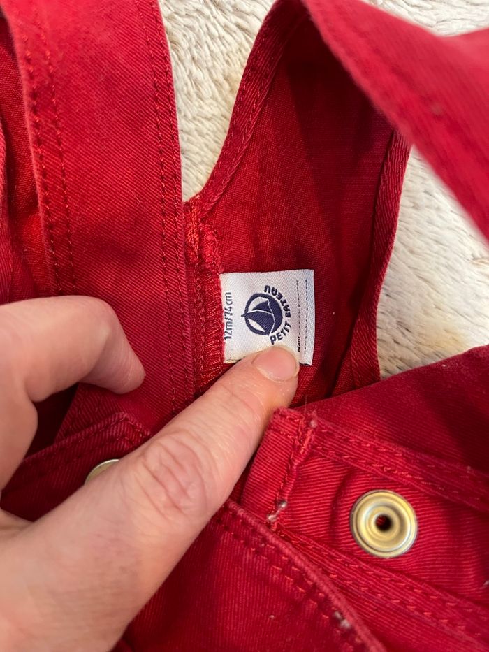 Salopette en jeans rouge Taille 12 mois Ouverture au niveau de l’entrejambe Petit Bateau Très bonne état