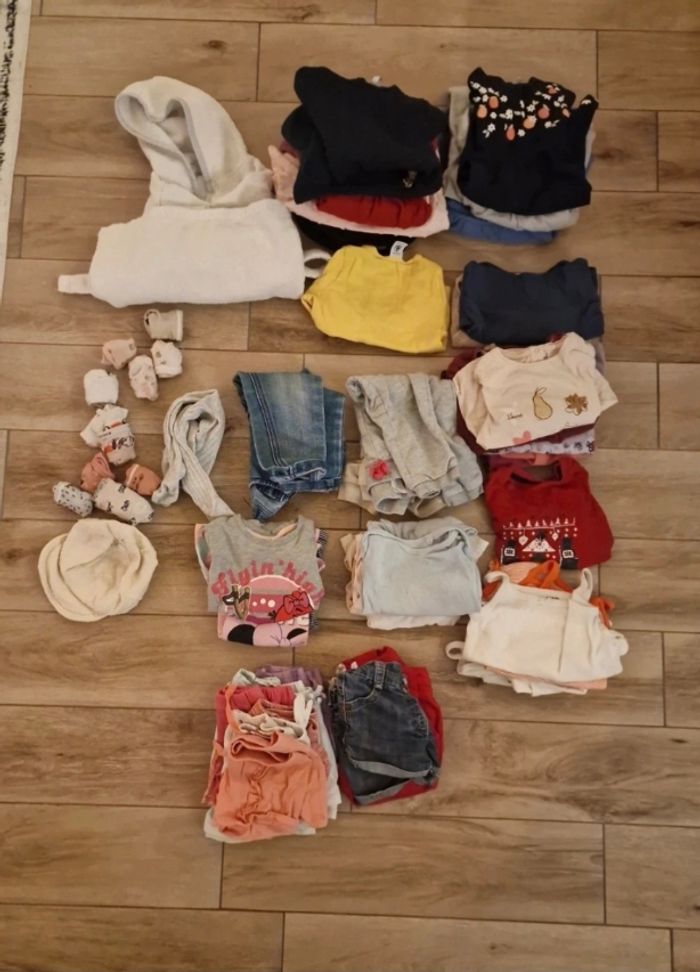 Gros lot de vêtement 2ans composé de : - 1 peignoir - 5 bodies debardeurs - 4 bodies t-shirts - 2 bodies manches longues - 10 shorts - 1 jeans - 2 pantalons style jogging - 3 t-shurts manches courtes - 6 t-shirts manches longues ( 2 présentent des defauts, voir photo) - 1 pull de Noel - 1 gilet fin jaune - 2 robes manches courtes - 5 robes manches longues (la bleu marine bouloche un peu, voir photo) - 11 paires de chaussette - 2 paires de collants - 1 casquette - 1 paire de moufles Donc 58 pièces. Très bon état général. Certaines pièces presentent de petits défauts, comme précisé dans la description, voir photos. Les bodies peuvent parfois présenter de légères traces également.