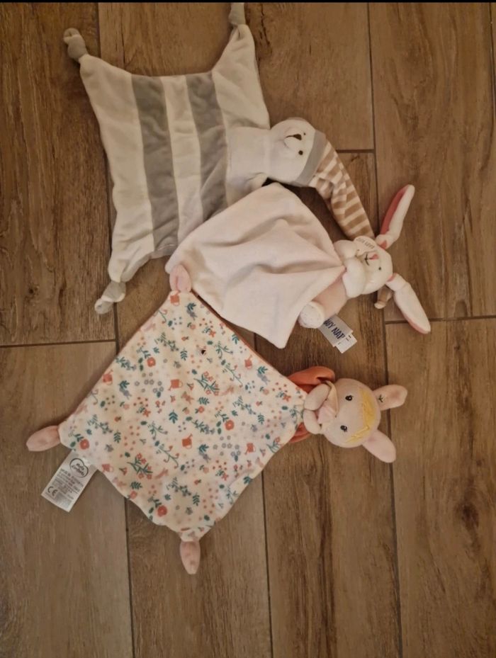3 doudous très doux, neuf. Un a l'étiquette coupée mais aucun des 3 n'a été utilisé
