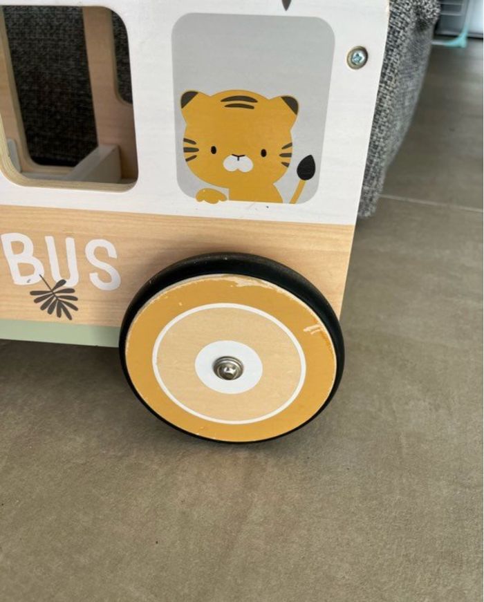 Porteur en bois Vertbaudet État d’usage Acheté neuf : 75€ En route petite troupe ! Grâce à ce porteur, les enfants seront les conducteurs d'un mini bus pour doudous. En soulevant la plaque sur l'assise, ils pourront installer leurs peluches préférées et partir à l'aventure ! Plaque amovible sur l'assise Roues avant directionnelles par le guidon Espace pour doudous à l'intérieur et à l'extérieur du bus Dimensions 48 x 25 x 33 cm Guidon : H 13 cm x L 29 cm Hauteur de l'assise : 25 cm L'info en + Dès 10 mois Développe l'équilibre et la motricité Favorise la confiance en soi Porteur bus à doudous HANOÏ 100% bois FSC® #jessicaeden78jouets