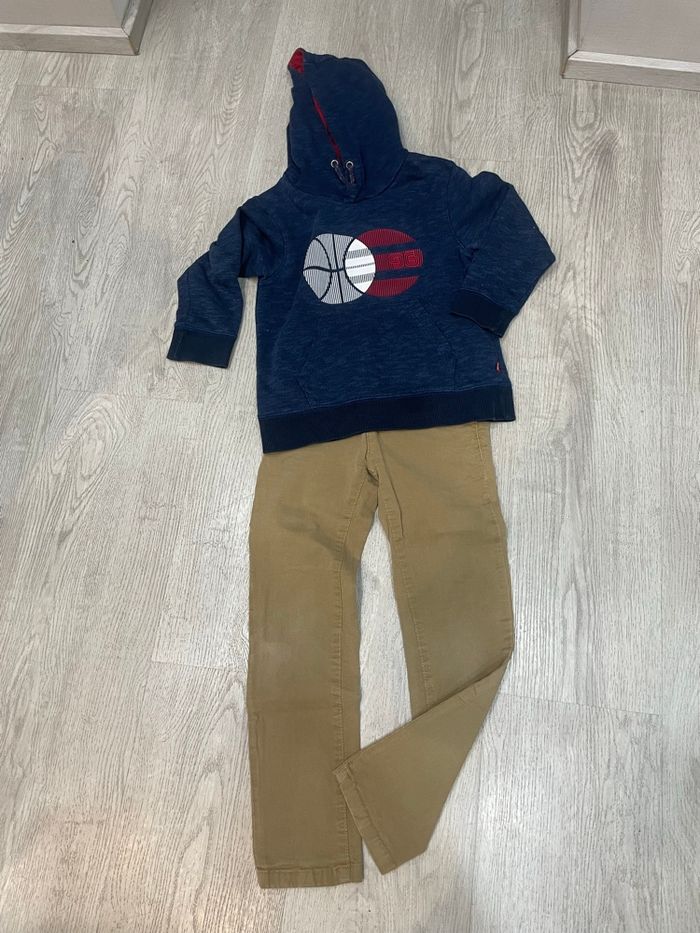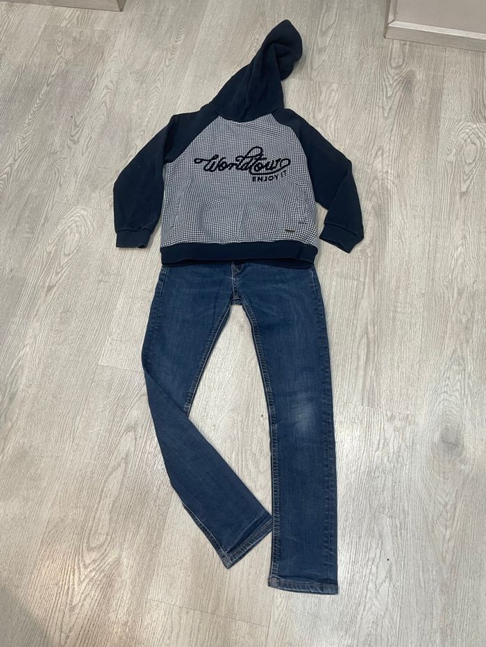 Habits garçon taille 8 ans en bon état. 2 pantalons dont 1 jeans Kaporal un peu usé au genou droit 2,-€ pièce. 2 sweat-shirt bleu à capuche et 1 gilet à capuche. 2,50,-€ pièce. 3 sweat-shirt m/long. 2,50,-€ pièce. 2 bas de jogging 1,50 pièce . 1 short 1-€ 6 tee-shirts m/ courtes 0,50 cts pièce. Prix total 26,-€ Si vous prenez Le lot je vous le laisse à 20,-€