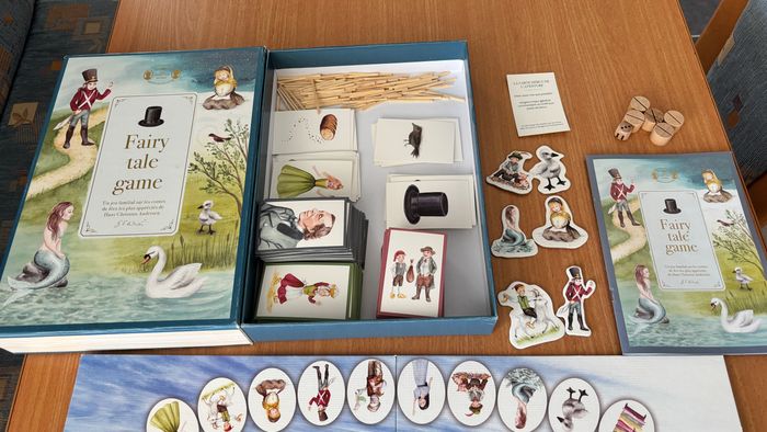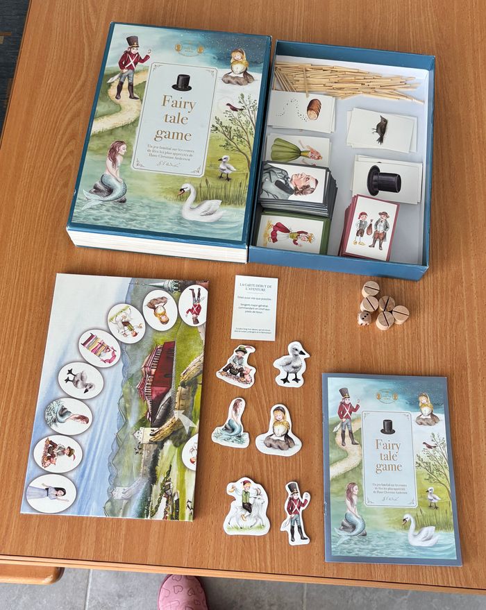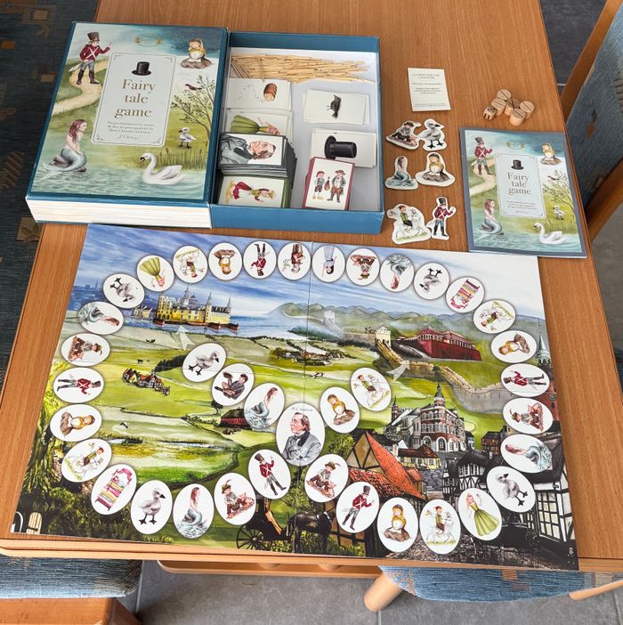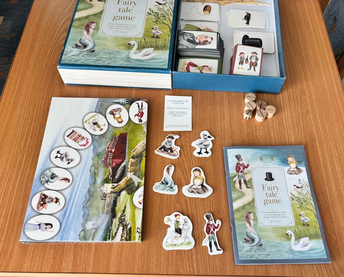 Jeu de société Fairy tale game Hans Christian Andersen Jeu de société amusant inspiré des contes de H.C. Andersen. jeu complet et très bon état il n’y a que la boîte qui a des petites imperfections Voir TOUTES les photos