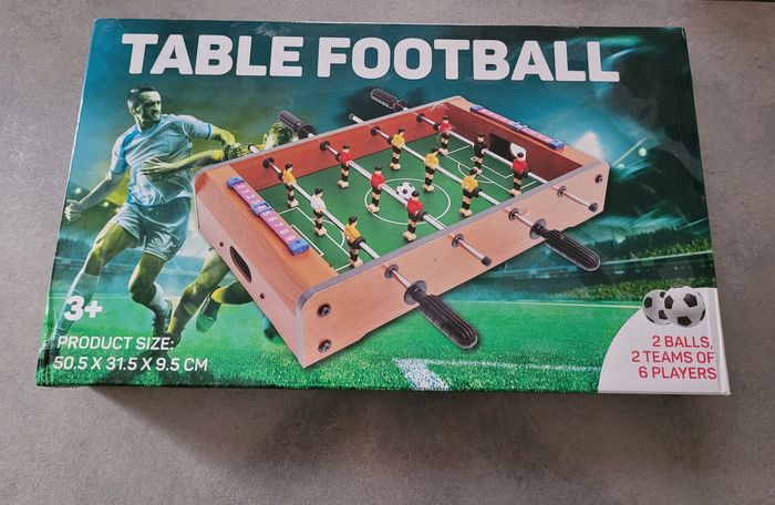 Convient pour 4 joueurs – Jouez avec vos amis, votre famille ou vos collègues et profitez d’heures de plaisir ! Très bon état. Jamais servi Comprend 2 balles – Prêt à jouer immédiatement, aucun accessoire supplémentaire requis. Fabriqué à partir de bois certifié FSC® – Bois issu de sources durables et responsables pour un choix respectueux de l’environnement. Conception compacte et portable – S'adapte à n'importe quelle table et est facile à ranger ou à emporter avec vous. Rapide et facile à assembler – Prêt à l’emploi en quelques minutes. Perfect pour la maison, le bureau ou les vacances – une activité idéale pour tous les âges ! Idéal comme cadeau – Un cadeau original et actif pour les anniversaires, les vacances ou tout simplement comme ça.