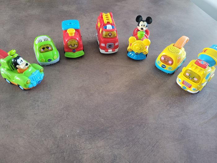7 véhicules tut tut bolides Très bon état Véhicule dingo bon état ( Véhicule jeff le pompier avance toute seul quand on appuie dessus. Possible prendre les 7 ou de choisir certains.