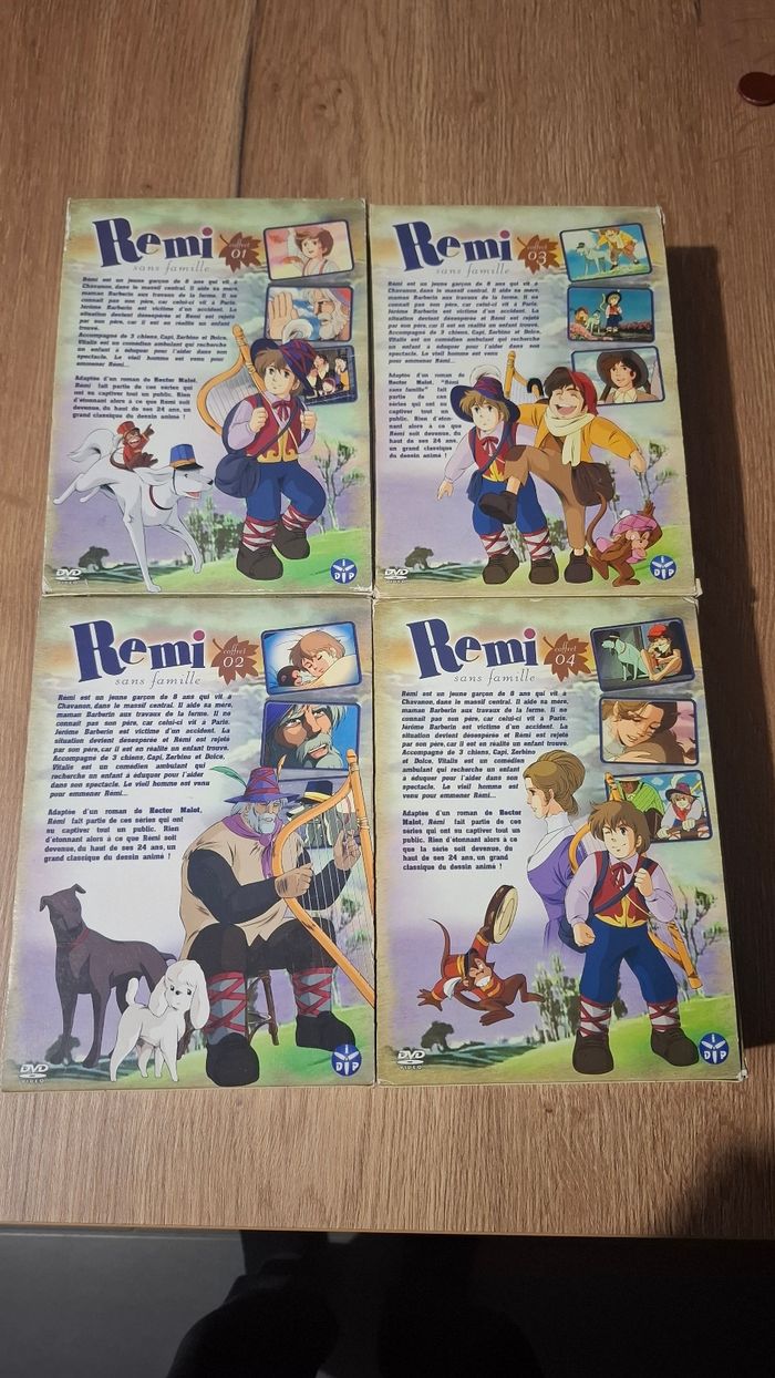 Je vous propose un lot de coffret DVD de la série animée 'Rémi sans famille'. Parfait pour les amateurs de dessins animés classiques et de nostalgie ! - Type de produit : Coffret DVD - Titre : Rémi sans famille - Type de contenu : Série animée - Composition du lot : 4 DVD de la série - Nombre de disques : 4 Bon état. N'hésitez pas à me contacter pour plus d'informations ou des photos supplémentaires !