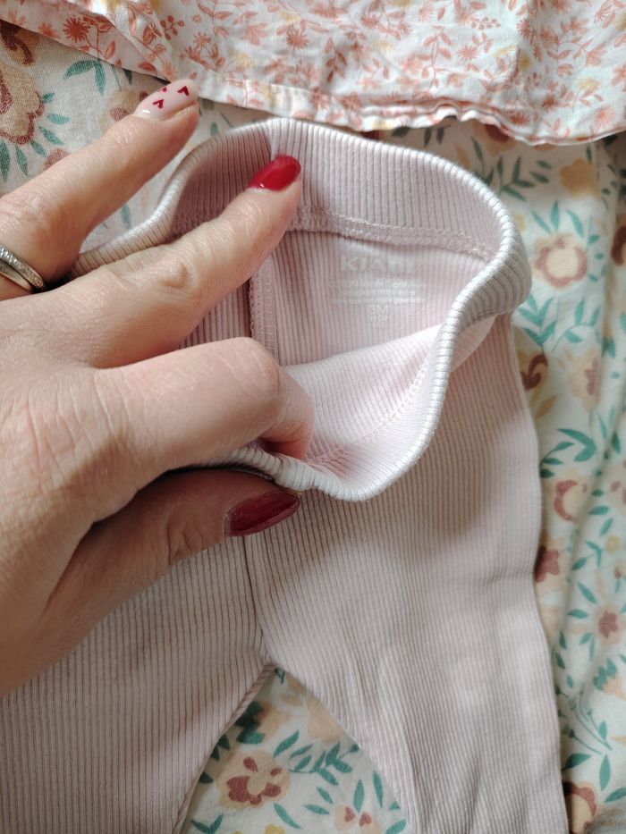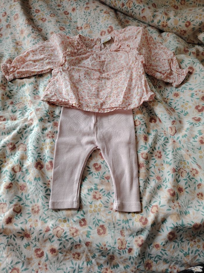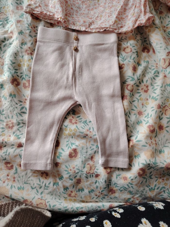 Ensemble composé d'un legging côtelé rose pâle de chez Kiabi en taille 3 mois et d'une fine blouse en taille 3 mois de chez tape à l'oeil. Le tout en très bon état.