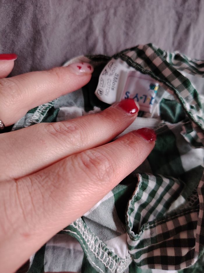 Barboteuse vichy verte vintage taille 3 mois  - photo numéro 4