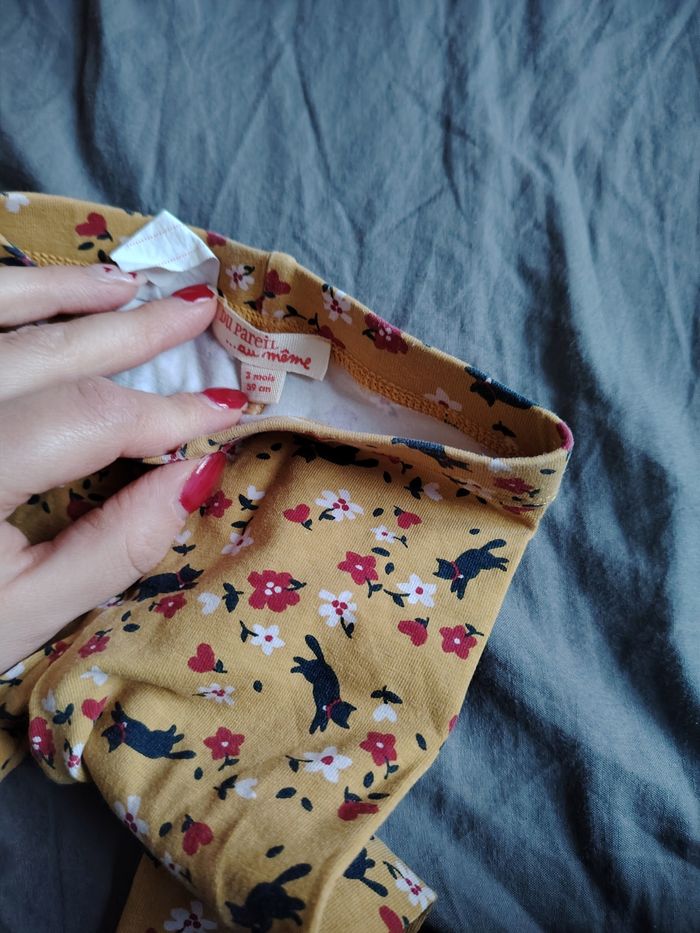 Legging jaune moutarde taille 3 mois motif chat et fleur  - photo numéro 2