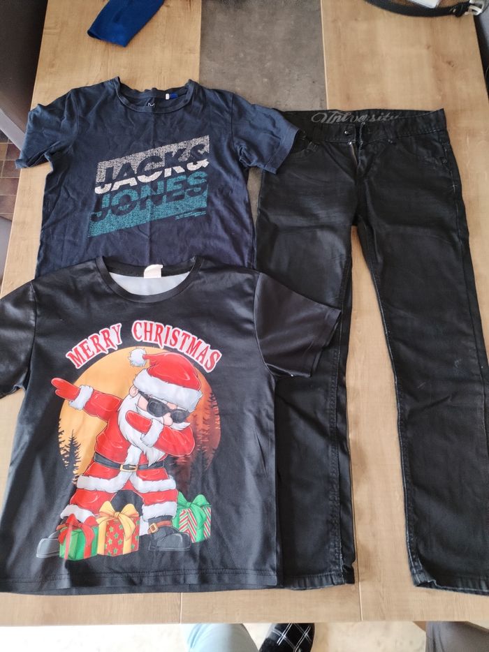 Très beau jean noir porté 2 fois, et 2 t-shirts (celui de noel est neuf)