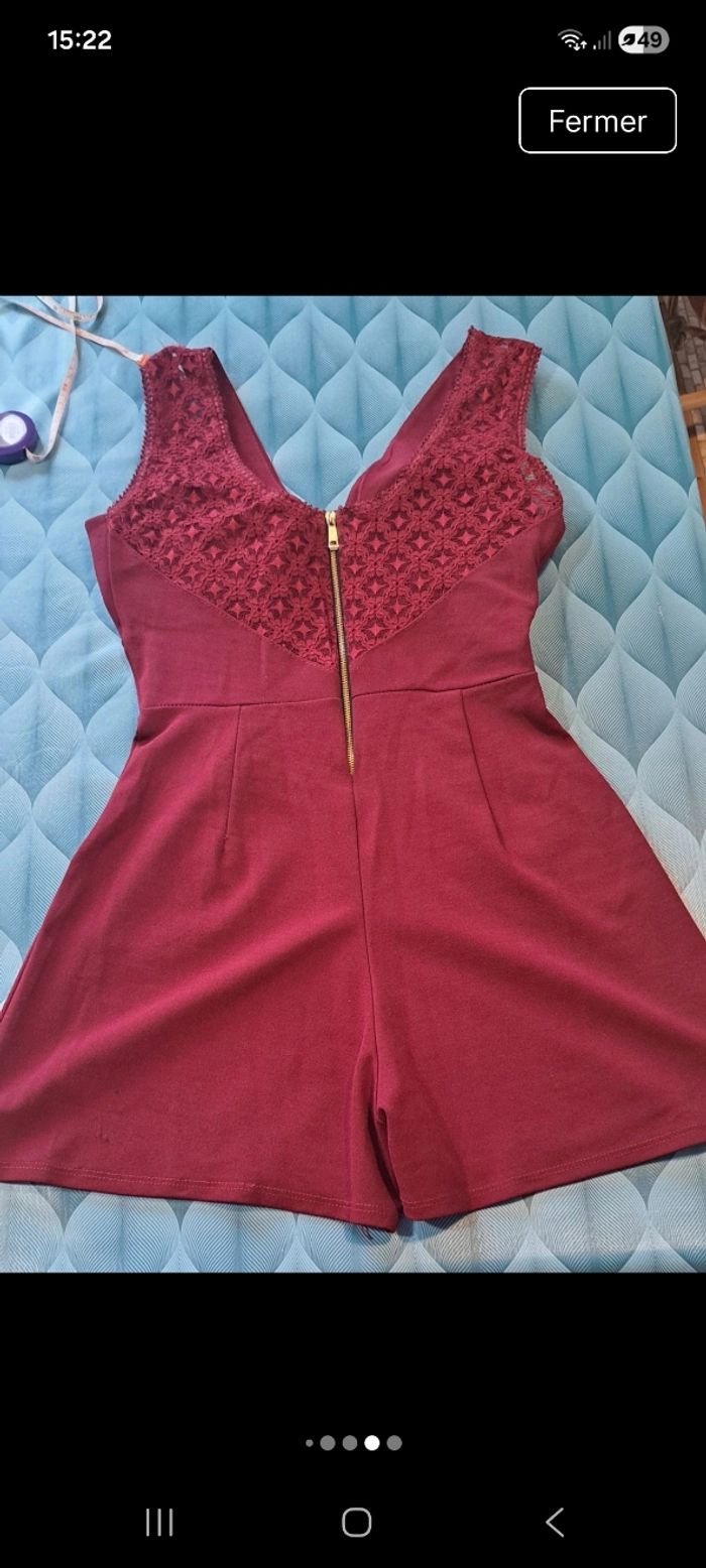 Combi-short bordeaux 2 poches latérales, fermeture éclair dans le dos, molleton à la poitrine Viscose, elasthane