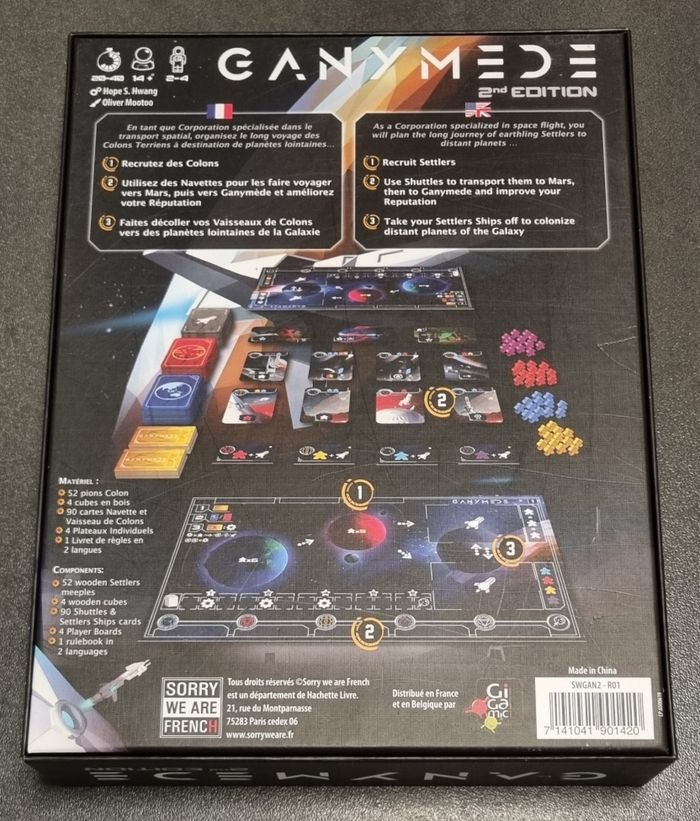 Bonjour, Je met en vente l'excellent jeu de société GANYMEDE 2ieme Édition en VF. La boite ainsi que l'ensemble des composants sont en très bon état car peu utilisé ! Restant à votre écoute pour toutes questions ou photos supplémentaires. Bonne journée 😀.