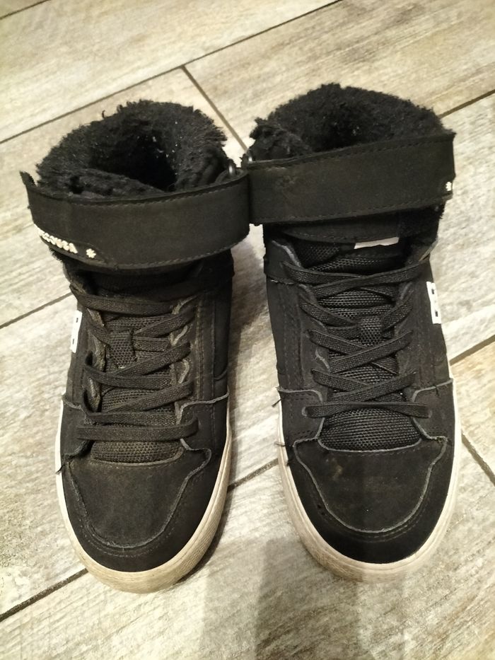 Baskets esprit skate board Fermeture à scratch doublure polaire Bon état général Abîmé sur le devant mais non trouée
