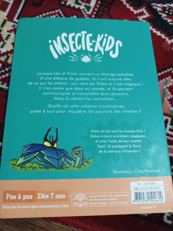 "Insecte-Kids - Les super-héros écolos", un livre jeunesse captivant pour les enfants qui aiment les aventures pleines d'action et d'écologie. - Titre : Insecte-Kids - Les super-héros écolos - Auteur : Alain Grousset - Illustrateur : Céci Rowland - Éditeur : Auzou - Collection : Pas à pas - Genre : Livre pour enfant & adolescent - Langue : Français - Âge recommandé : À partir de 7 ans - ISBN : 978-10-395-0404-4 Très bon état Une belle aventure écologique vous attend !