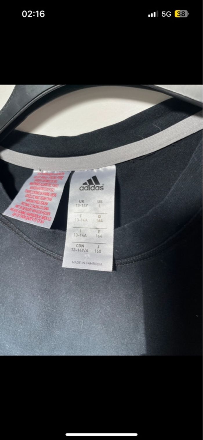 T-shirt Adidas. Matière élastique. Porté plusieurs fois. Taille 13/14 ans ou L enfant.