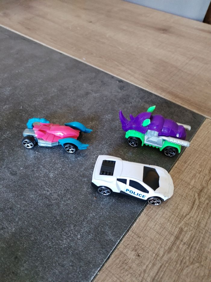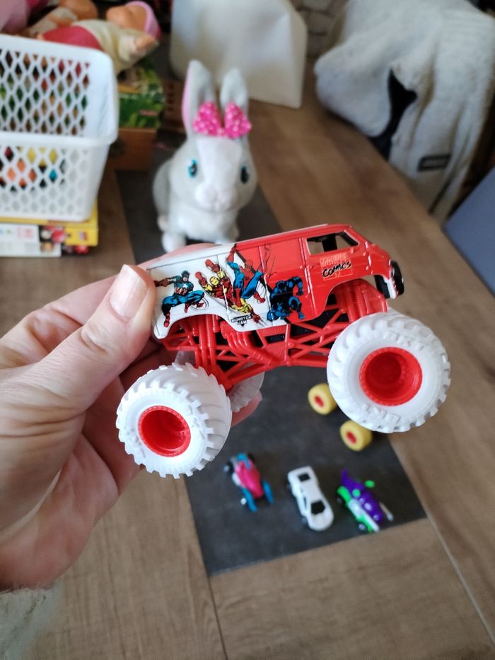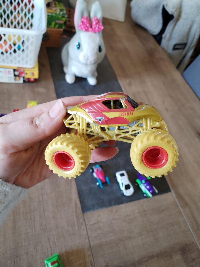 Lot 3 jolies petites voitures et 2 monster truck marvel en parfait état