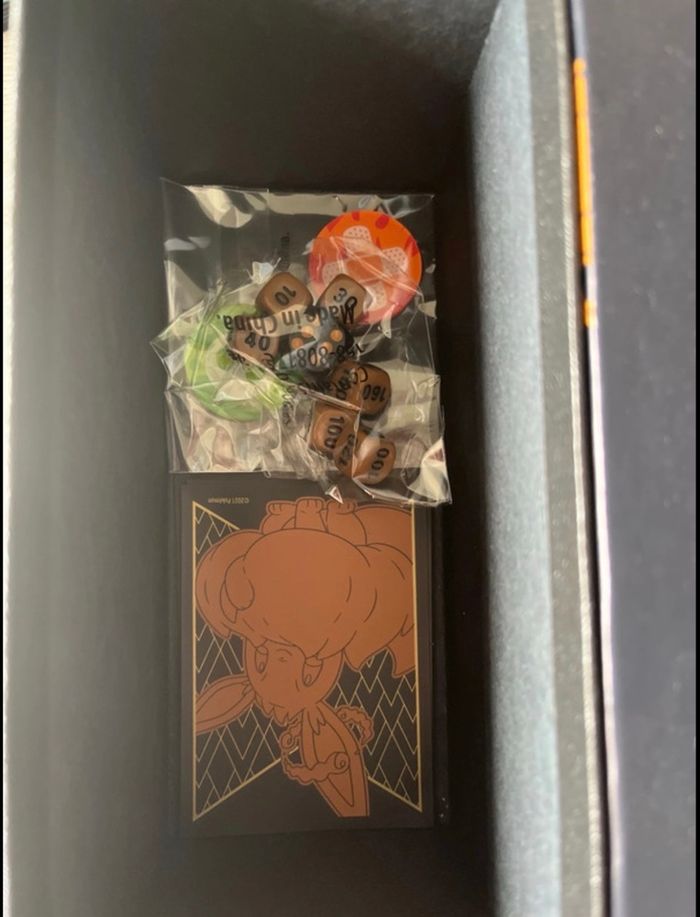 Cartes 100% officielles Pochettes pour mettre les cartes, boîtes, dés… Les cartes et les pochettes sont en très bon état.