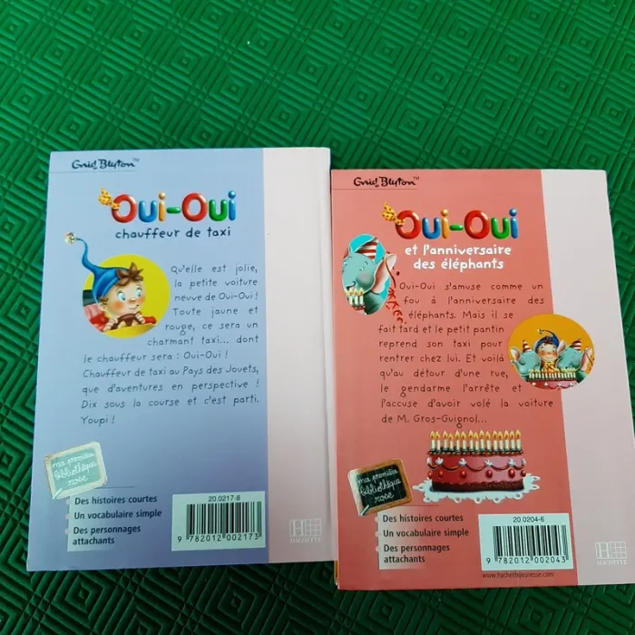 1. Oui-Oui chauffeur de taxi 2. Oui-Oui et l'anniversaire des éléphants Livres en excellent état (cf photos), sans tache, ni déchirure.