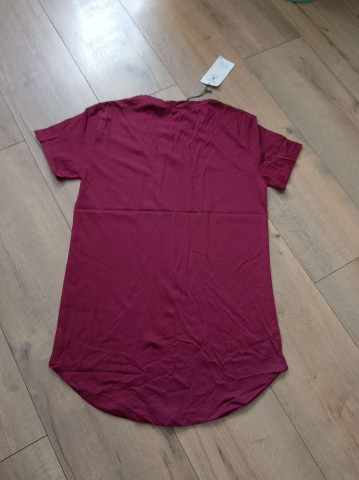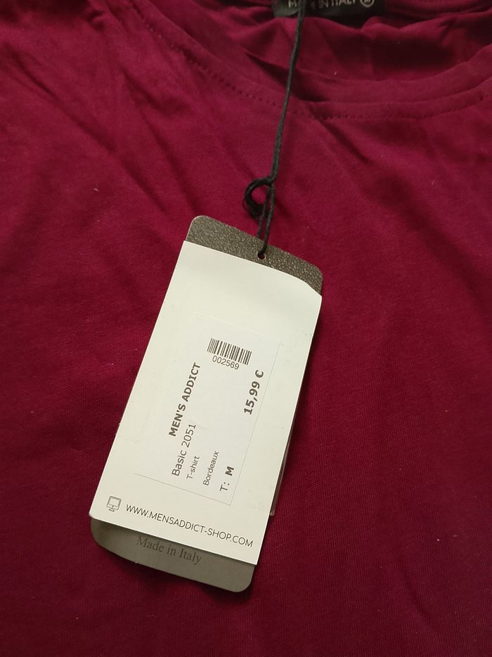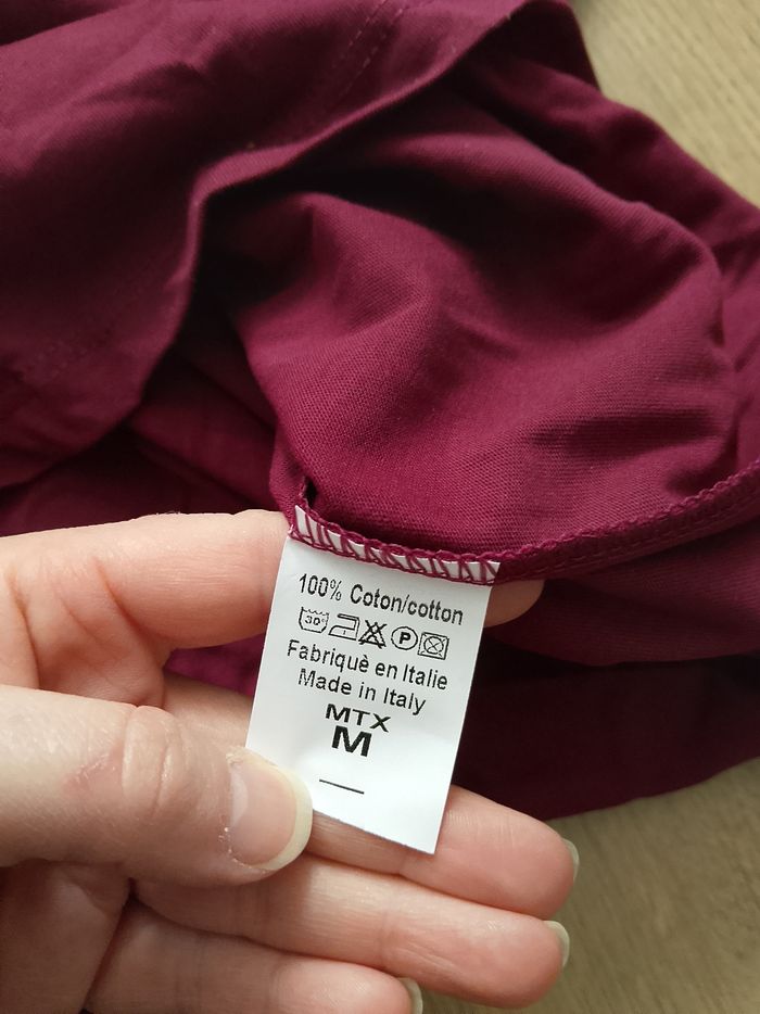 T-shirt bordeaux uni sur le devant et l'arrière, manches courtes pour homme. Coupe arrondie sur le bas. 100%Coton. Taille : Étiqueté en M Marque : MTX. Mesure dessous de bras à dessous de bras : 50 cm Article neuf avec étiquette. Vendu en magasin au prix de 15,99€. Carton 2051 Bordeaux M
