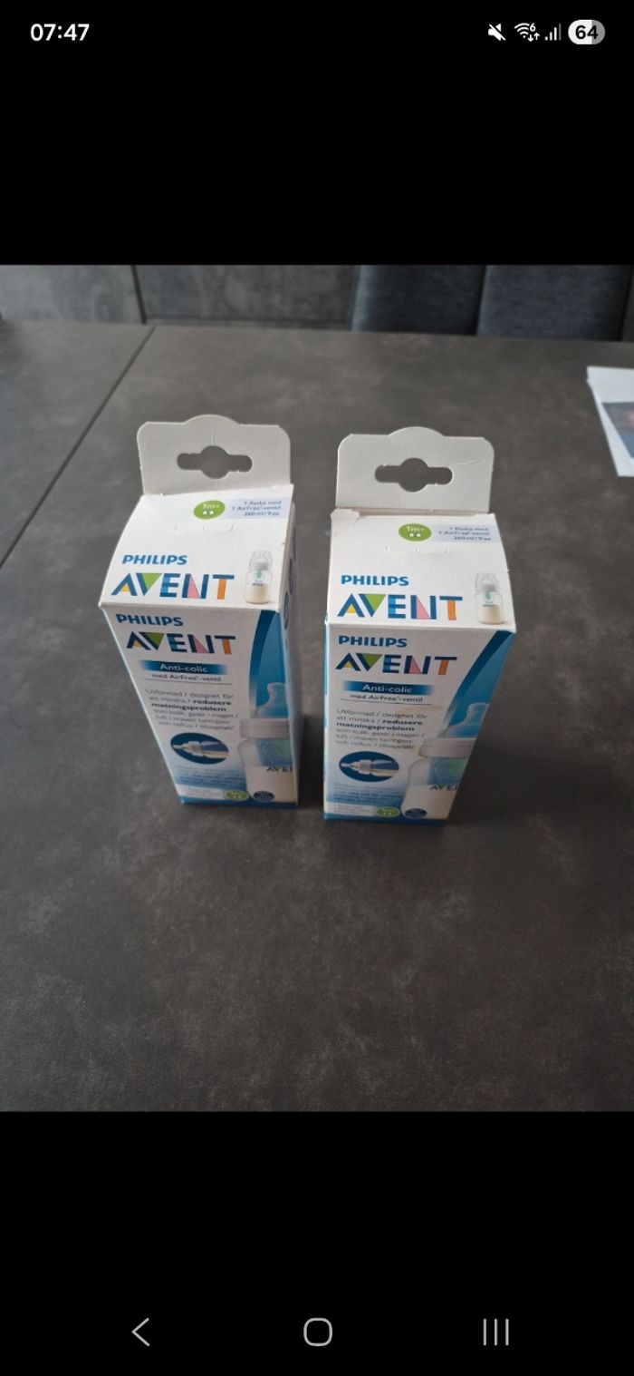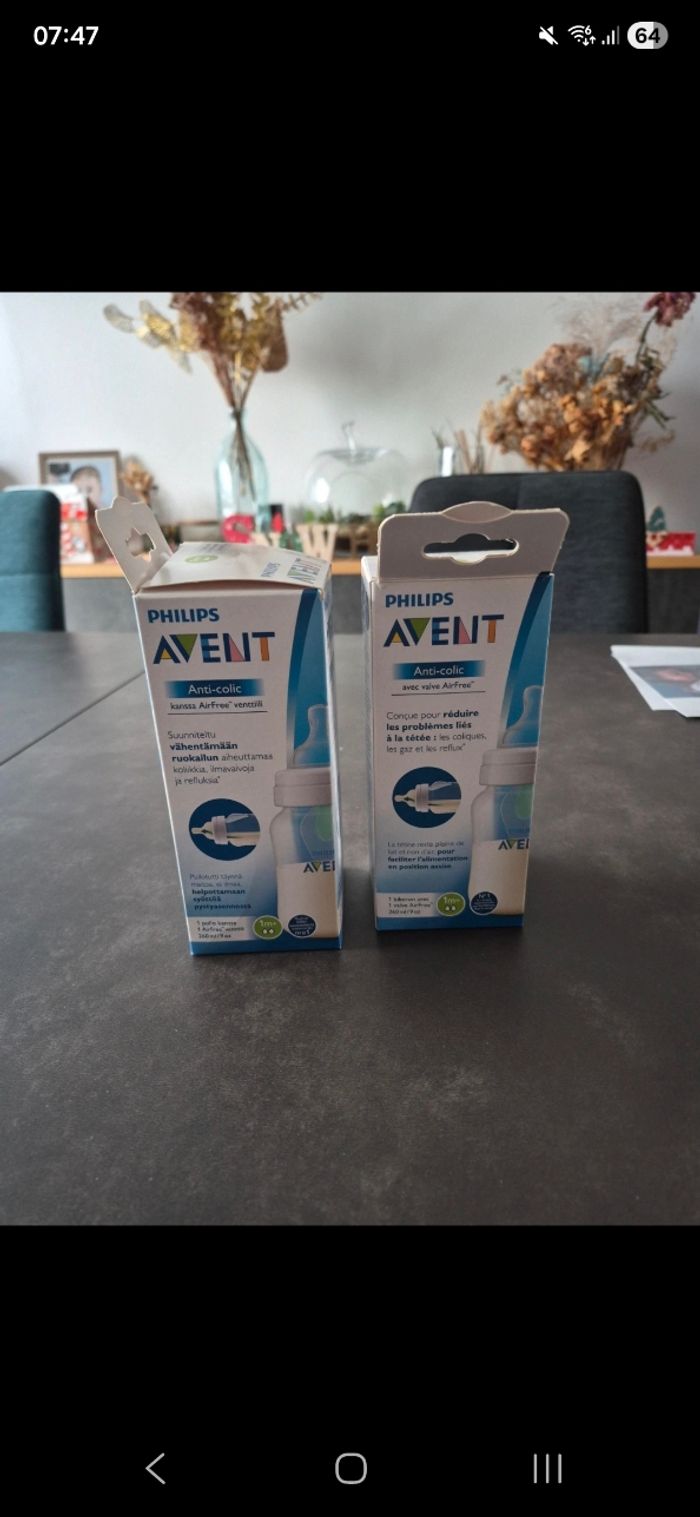 Biberons avec valves anti-colic. 1 complète neuf avec notice. L'autre essayé une fois et sans notice mais comme neuf avec la boîte. Lot non dissociable.