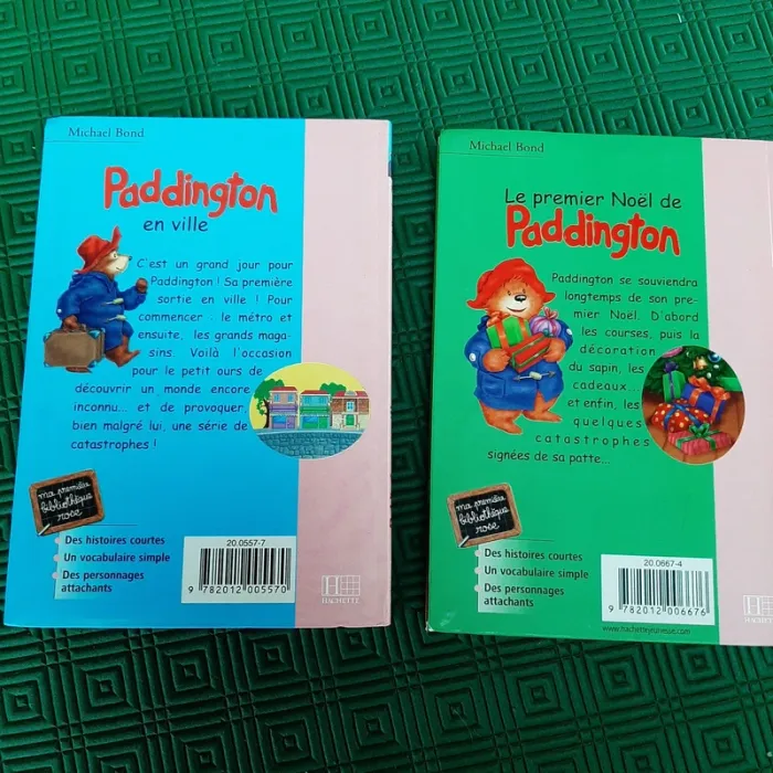 1. Paddington en ville 2. Le premier Noël de Paddington Livres en excellent état, pas de tache, ni déchirure. Je signale juste 2 annotations sur chacun des livres en première de couverture (cf les 2 dernières photos)
