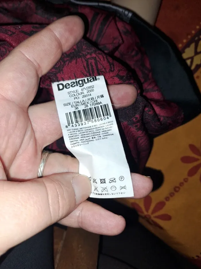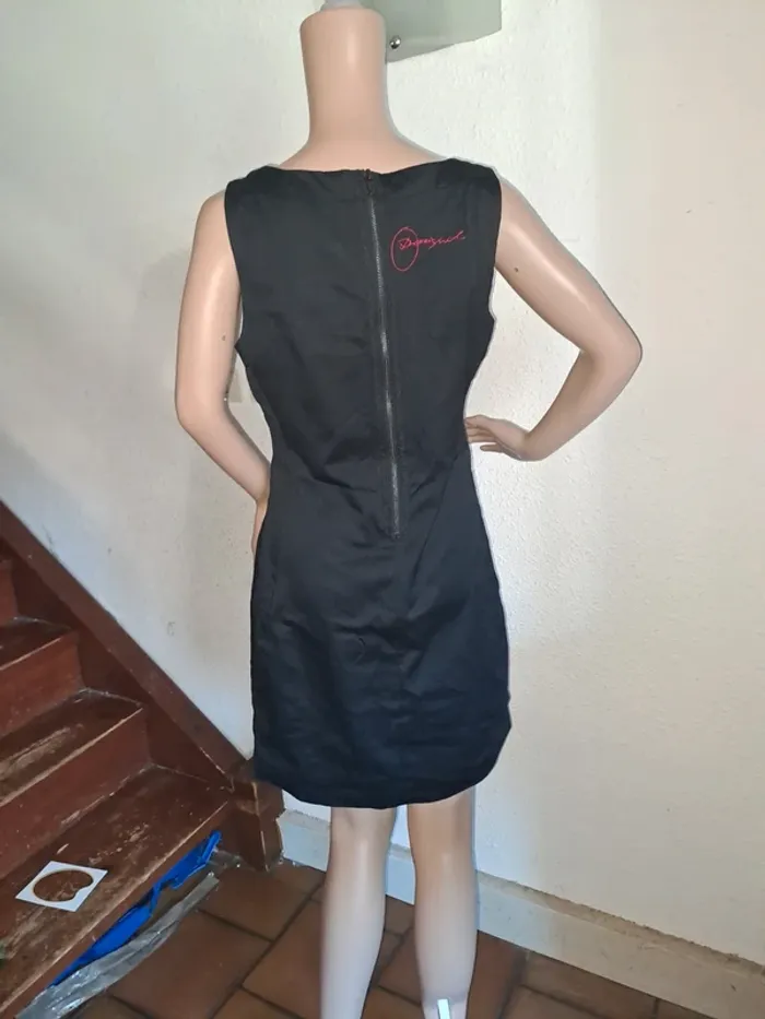 Je vends cette robe Desigual taille 38, aux motifs géométriques et colorés. Une pièce originale et dynamique qui apportera du caractère à votre garde-robe. - Type de produit : Robe - Marque : Desigual - Taille : 38 - M - Couleur : Noir avec motifs géométriques (blanc, rose, bleu) - Caractéristiques : Sans manches, Fermeture éclair au dos - Coupe : Cintrée N'hésitez pas à me contacter pour plus d'informations ou de photos.
