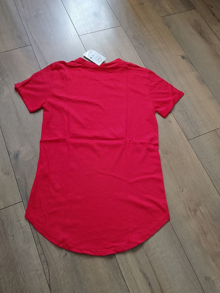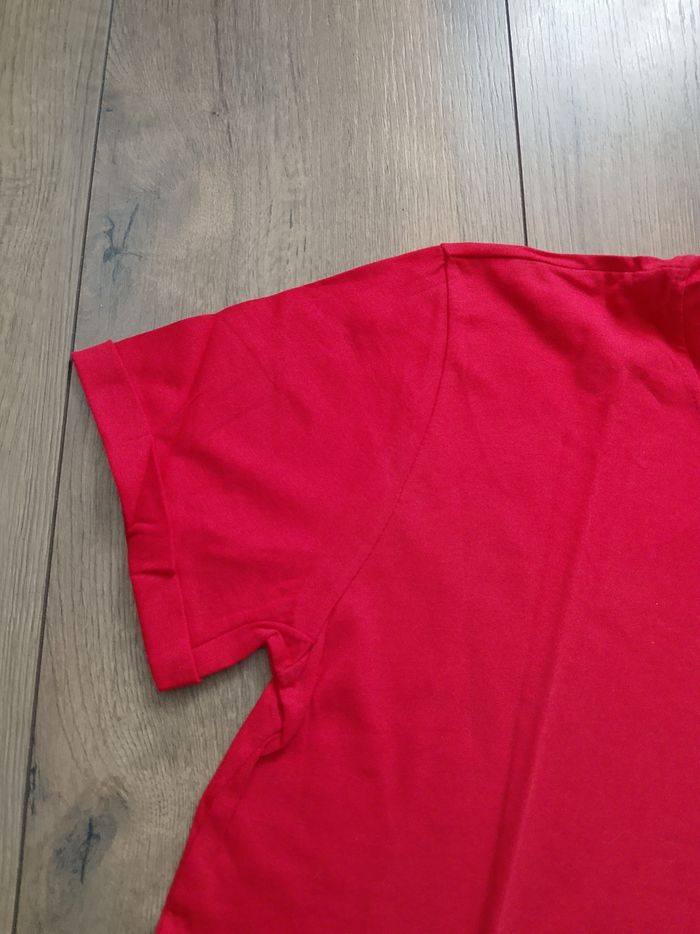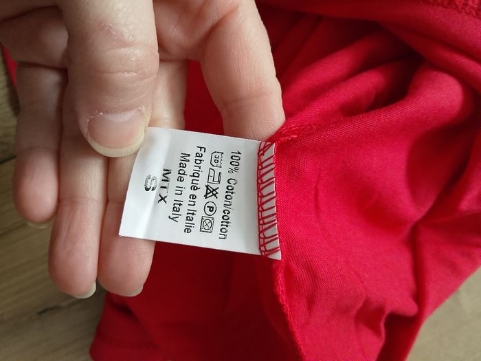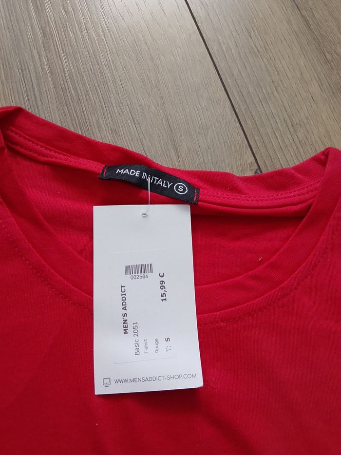 T-shirt rouge uni sur le devant et l'arrière, manches courtes pour homme. Coupe arrondie sur le bas. 100%Coton. Taille : Étiqueté en S Marque : MTX. Mesure dessous de bras à dessous de bras : 47 cm Article neuf avec étiquette. Vendu en magasin au prix de 15,99€. Carton 2051 rouge S
