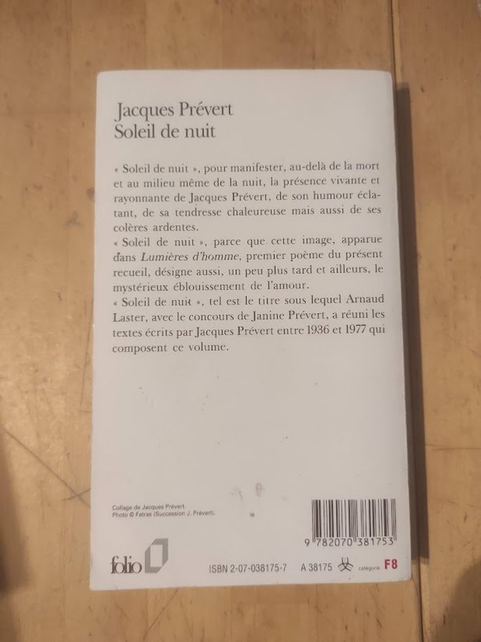 Soleil de nuit Jacques Prévert Folio 1999 - photo numéro 4