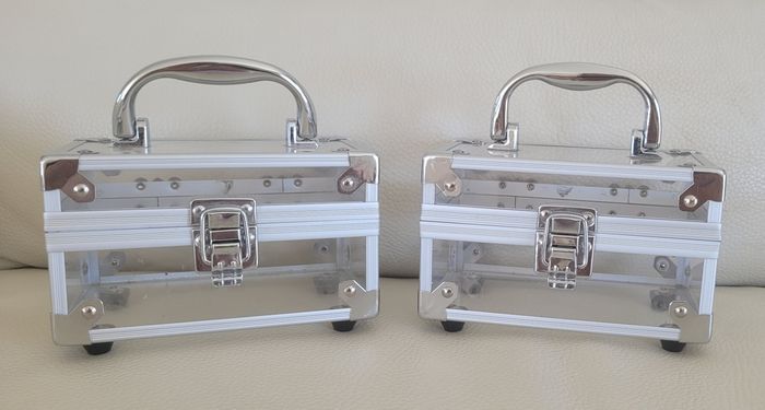 Lot de 2 malettes, boîtes ou vanity en matière plexiglass. Longueur : 15 cm Hauteur : 10 cm Largeur: 10 cm