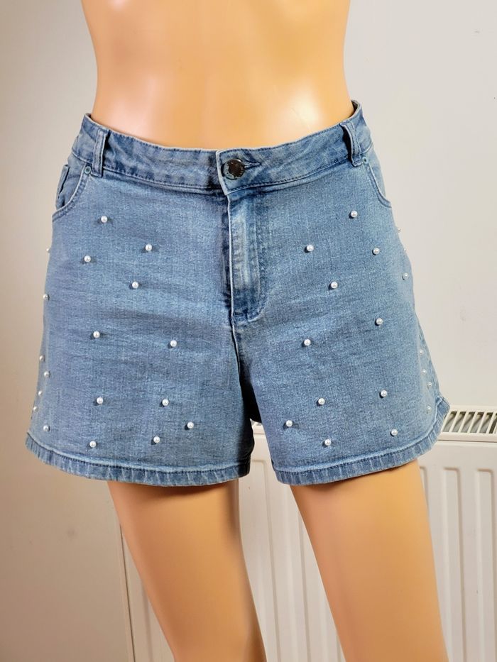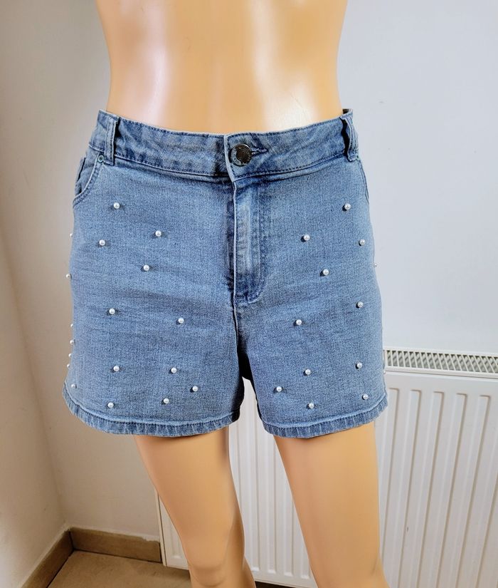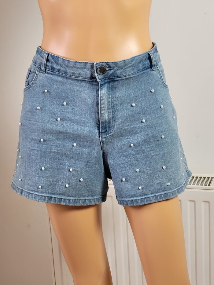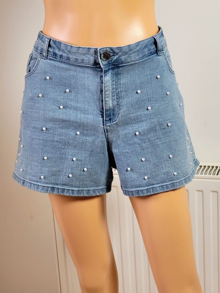 Tendance Short jeans femme avec broderie de perles taille 46 très bon état
