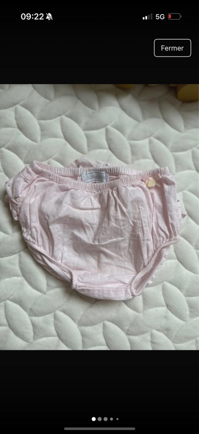 Adorable bloomer rose pâle, neuf, avec de délicates broderies Tartine et Chocolat 🤍 Un modèle plein de douceur et d’élégance, parfait pour compléter une jolie tenue de bébé. On craque pour ses petits volants raffinés et ses finitions soignées qui apportent une touche chic et intemporelle. Matière douce et agréable à porter, idéale pour le confort des tout-petits. ✨ Couleur : rose pâle ✨ Détails : volants et broderies ✨ État : neuf Envoi très rapide et soigné, fait avec amour 💌