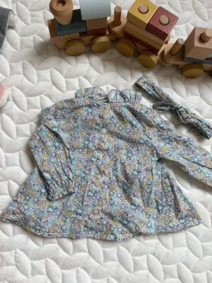Blouse Tartine et Chocolat Liberty neuve avec bandeau assorti – taille 18 mois - photo numéro 2