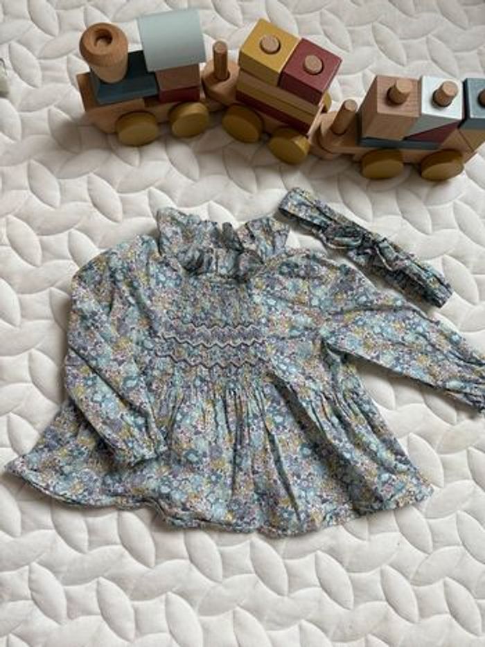 Blouse Tartine et Chocolat Liberty neuve avec bandeau assorti – taille 18 mois - photo numéro 1