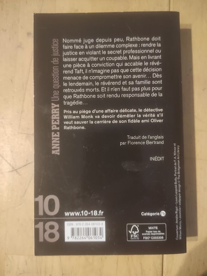 Une question de justice Anne Perry 10/18 Grands Détectives 2013 - photo numéro 4