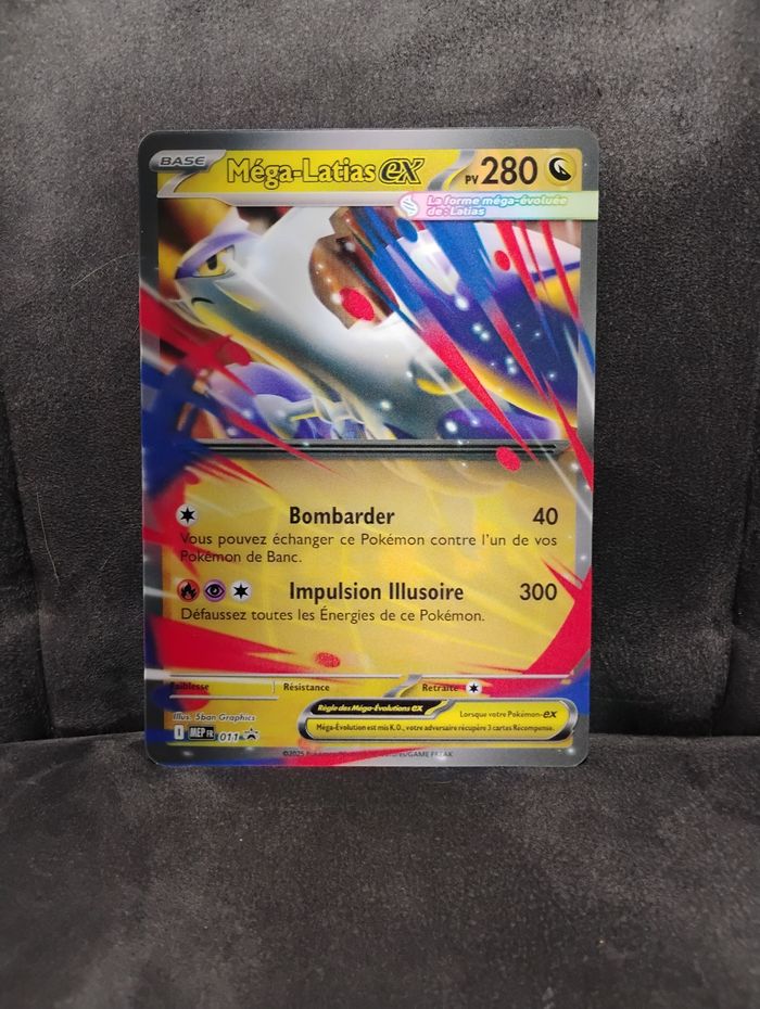 Je vends cette carte de collection pokemon Méga Latias Ex promo MEP011 du bloc méga évolution c'est une brillante. Elle est en très bon état Je la vends 6€ . La carte sera envoyé soigneusement pour éviter qu'elle ne s'abime pendant le transport. ✨N'hésitez pas à jeter un petit coup d'œil à mon profil avant achat