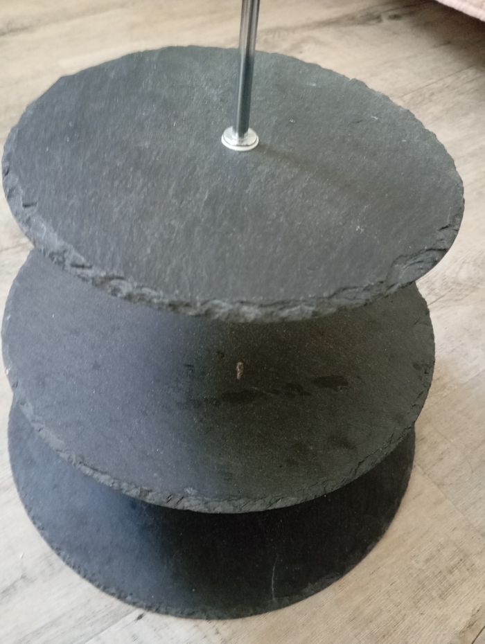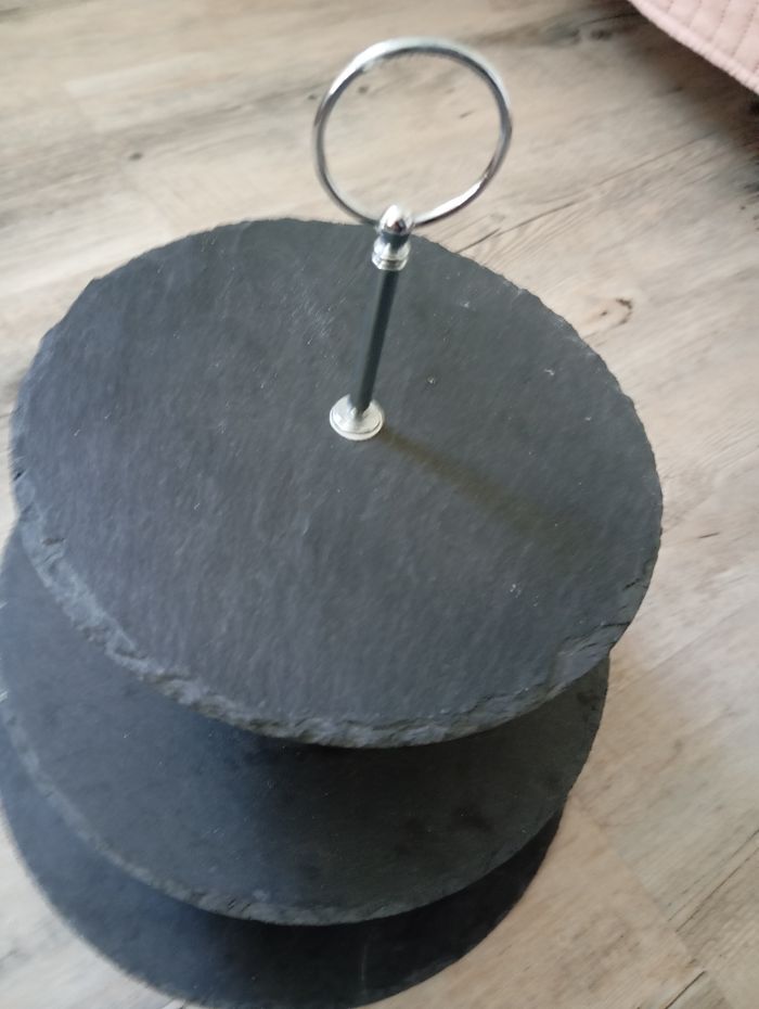 Plateau en ardoise pour sur 3 étages pour fromage charcuterie avec anse en bon état.